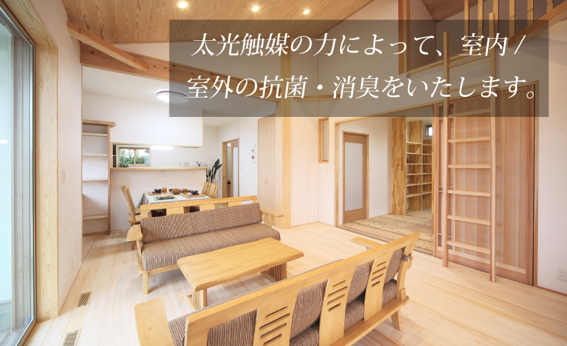 光触媒の力によって、室内/室外の抗菌・消臭をいたします。